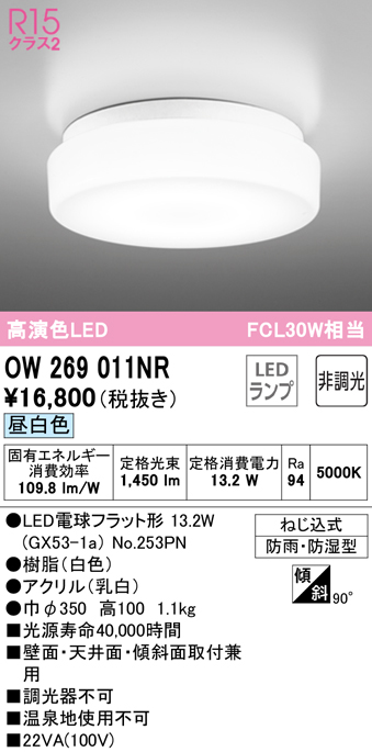 ■(送料無料) オーデリック OW269011NR バスルームライト LEDランプ 昼白色 非調光 ODELIC