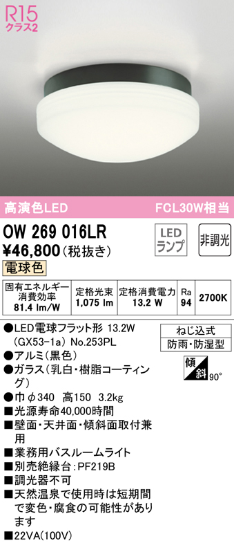■(送料無料) オーデリック OW269016LR バスルームライト LEDランプ 電球色 非調光 ODELIC