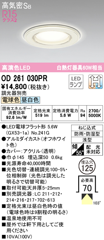 ◆メーカー:オーデリック ◆品名:バスルームライト LEDランプ 電球色/昼白色 光色切替調光 ◆品番:OD261030PR ◆器具光束(lm):501〜1000 ・商品スペックについては商品画像をご参照くださいませ。 ◆沖縄県は配送不可となります。ご了承下さい。 ※「発送先が北海道・沖縄・離島地域」に該当するお客様は別途送料がかかる場合がございます。 システムの都合上、ご注文時には送料が加算されておりませんが、 ご注文完了後に当店よりメールにて追加送料の承諾が取れてから手配を進めさせていただきます。 「発送先が北海道・沖縄・離島地域」に該当するお客様で ご注文前に送料を知りたい方はお問い合わせいただけましたらご案内いたしますので、 お気軽にお申し付けください。