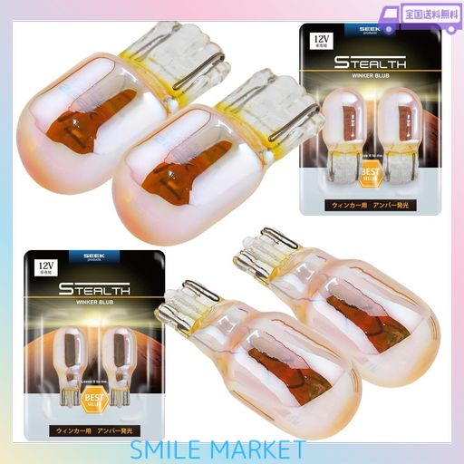 SEEK products ステルスウインカーバルブ クロームバルブ ステルスバルブ ウインカー ハロゲン球 (T20 ピンチ部違い(2球))バルブタイプ:T20 ピンチ部違い ウインカー球専用 アンバー 2球入り消灯時はオレンジ色が映りこみにくい特クロームコーティング、点灯時はウインカー特有のオレンジ発光(アンバー色)【車検対応】 ステルスバルブのネックであった点灯時の明るさを改善し車検基準をクリア純正バルブ形状、規格同等だから、サイズを気にせず安心してご使用いただけます。ハロゲンバルブだから、LED化に伴うハイフラッシャー等の不具合に悩まされる心配はありません。