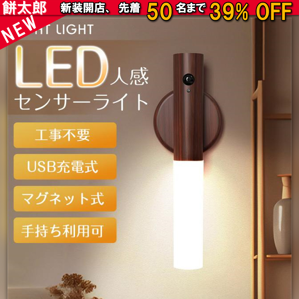 ★2点で400円OFF & starf;LED 人感センサーライト 充電式 室内 玄関 廊下 寝室 ナイトライト フットライト 足元灯 非常灯 防災 自動点灯 消灯