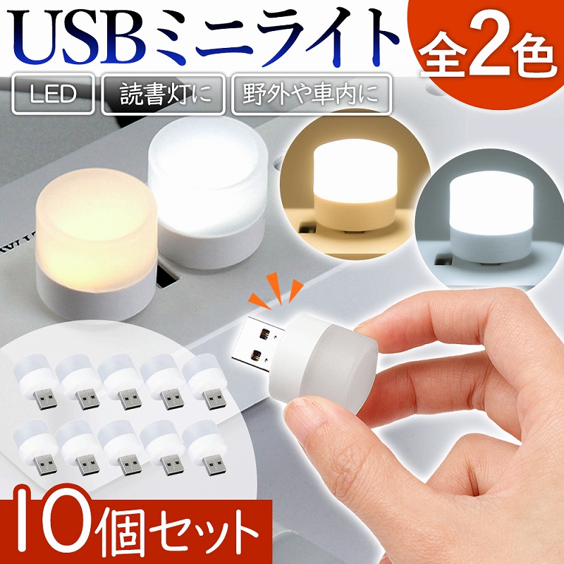 おうちのちょっとした灯りにはもちろんキャンプやアウトドア、緊急時にも使えるミニライトが登場!USBポートにさすだけで設置完了。USBポートにさすだけでOKなので、充電の心配や電池の取り換えがいらないところが魅力。ノートPCにさしてもつかえるので、外で撮影した写真の確認だって明るく見られます。白色×5個、暖色×5個の合計10個でお届けいたします。お家のいろんな場所で使ったり、アウトドア用に予備を何個か持って行ったり…。作業のお供に最適な、優秀アイテム。使い方は簡単。USBに挿せば点灯、抜いてOFF。シンプルだからこそ直感的に誰もが使える幅広い方から大人気のLEDライトです。睡眠時の常夜灯にも。夜中お手洗いに行くときや、お子様のお世話などにも大活躍。ほどよい間接照明替わりにもお使いいただけます◎【サイズ】約36.6mm×約23.7mm【素材】プラスチック、金属、LEDライト【仕様】白色5個 & 暖色5個合計10個セットでお届け