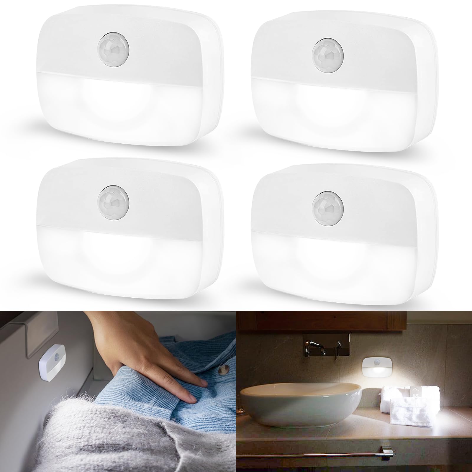 ■AmmToo Ledセンサーライト 昼光色 電池式 足元灯 フットライト 室内 人感センサー 配線不要 ナイトライト 明暗光センサー 自動点消灯 冷