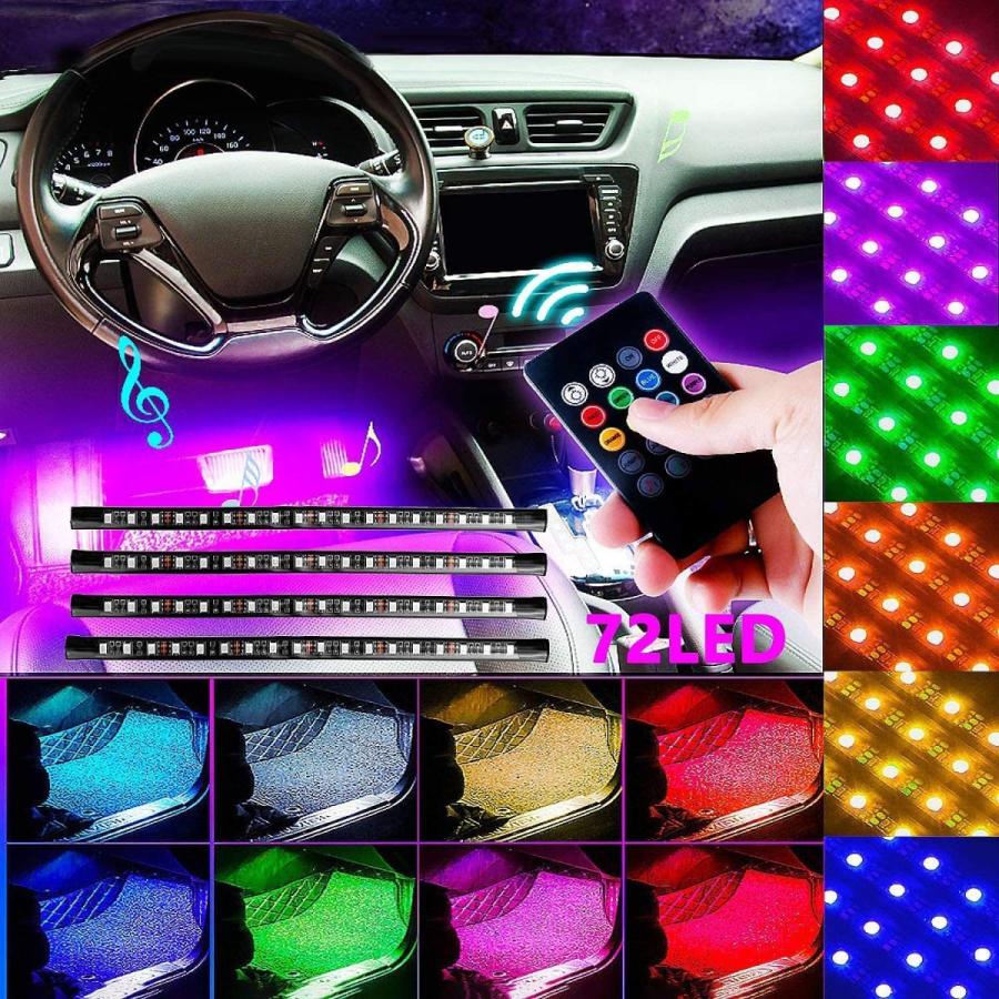 送料390円 車 テープライト LED USB 18LED×4本 72LED 車内装飾用 フットランプ リモコン フットライト フロアライト