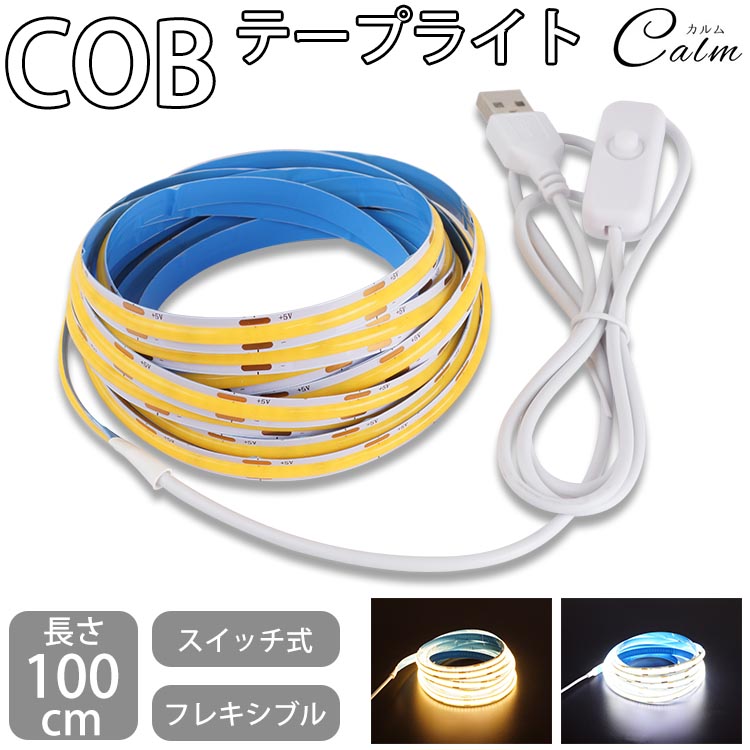 ■COB テープライト 100cm USB 高輝度 180° カット 両面テープ フットライト バックライト テレビ モニター 昼白色 電球色
