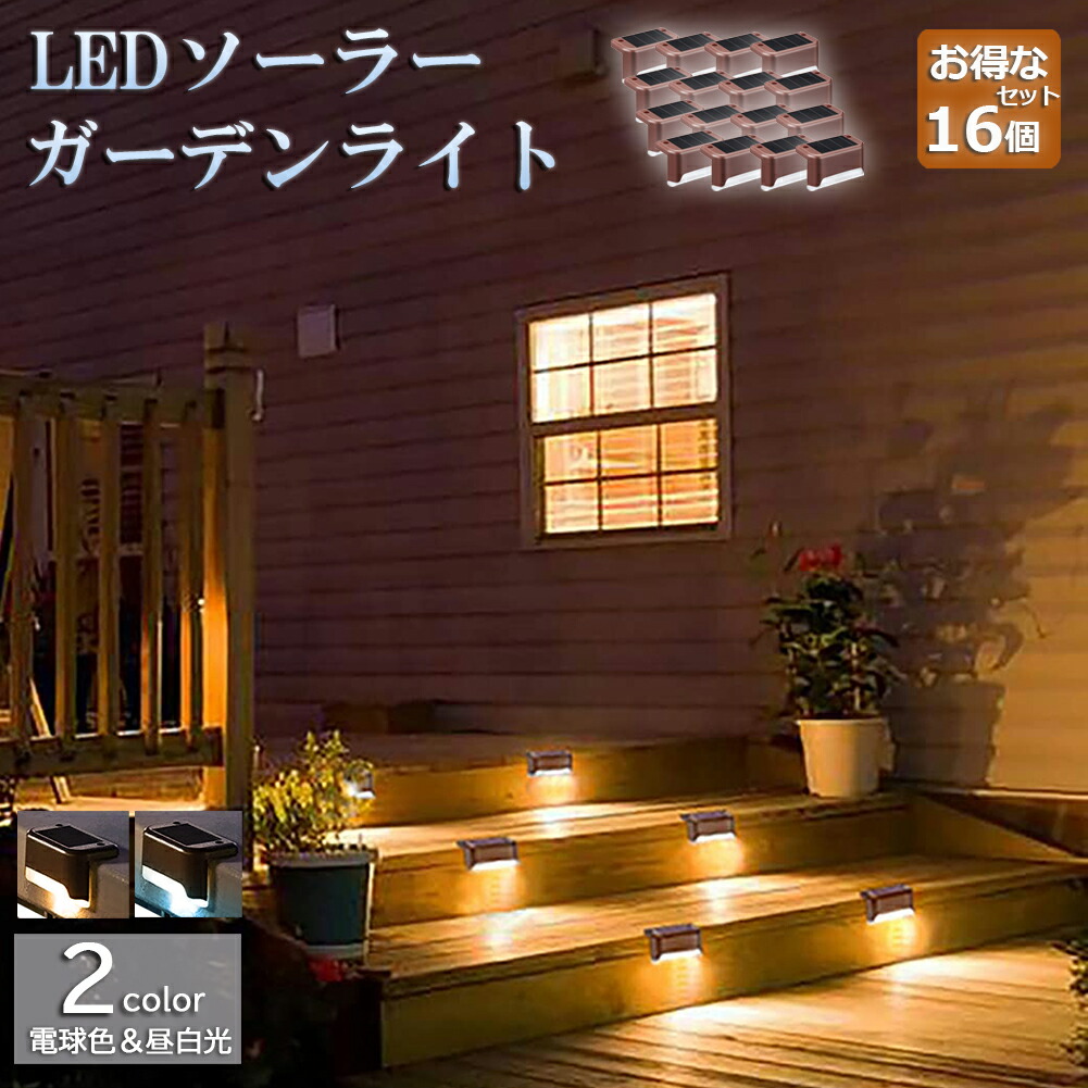 ■ソーラーライト 屋外 防水 照明 ガーデンライト 16個セット デッキライト フットライト LED 明るい 自動点灯 センサー 電球色 昼白光 置