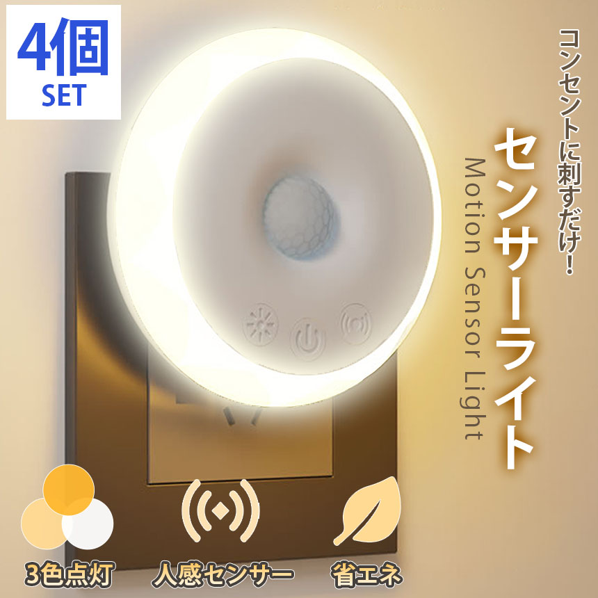 ■センサーライト 4個セット人感 コンセント フットライト 屋内 屋外 人感センサー 調光 明るさ 調整 調節 タイマー 自動点灯 消灯 LED セ