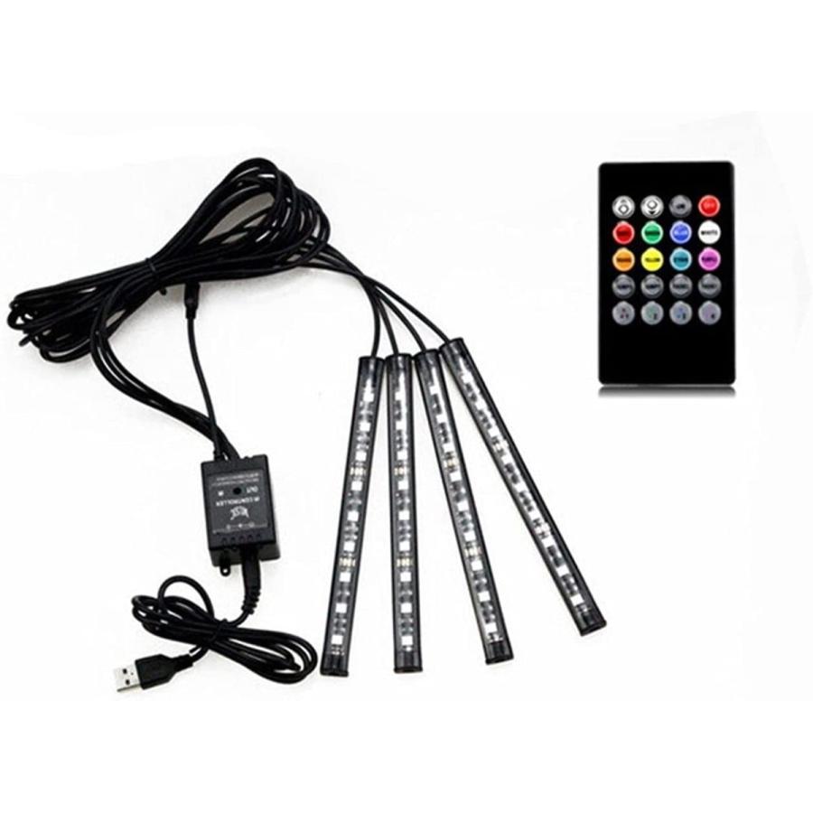 送料690円 テープライト 4本 LED 16色 RGB 車用 装飾 防水 高輝度 フットライト 足下照明 リモコン付き