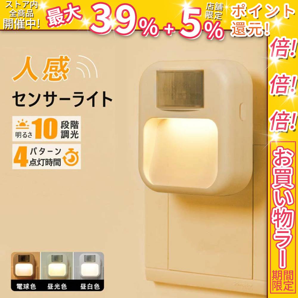 ■クーポン対象 年末セール センサーライト コンセント 人感センサーライト フットライト 屋内 3段階調色 10段階調光 明るさ調整 タイマー