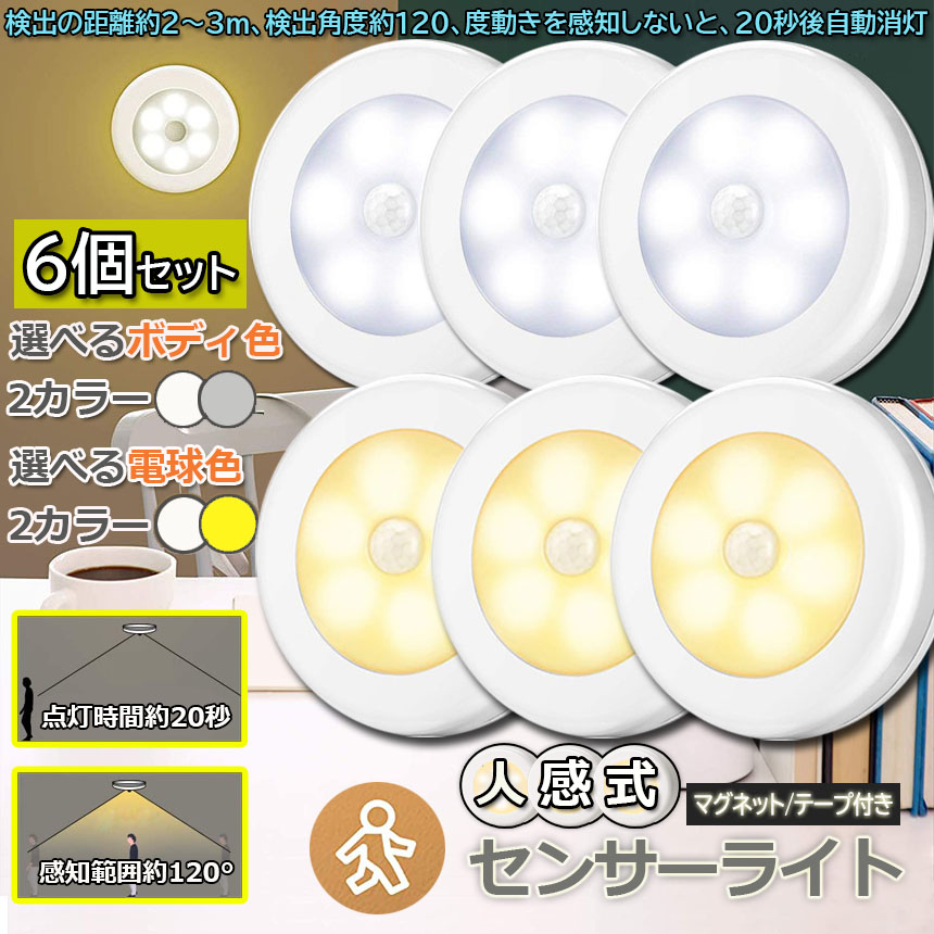 ■人感センサーライト 6個セット 電池式 1個のみ フットライト 小型 LED足元ライト 室内 ベッドサイドランプ 明暗センサー 停電 防災 対策