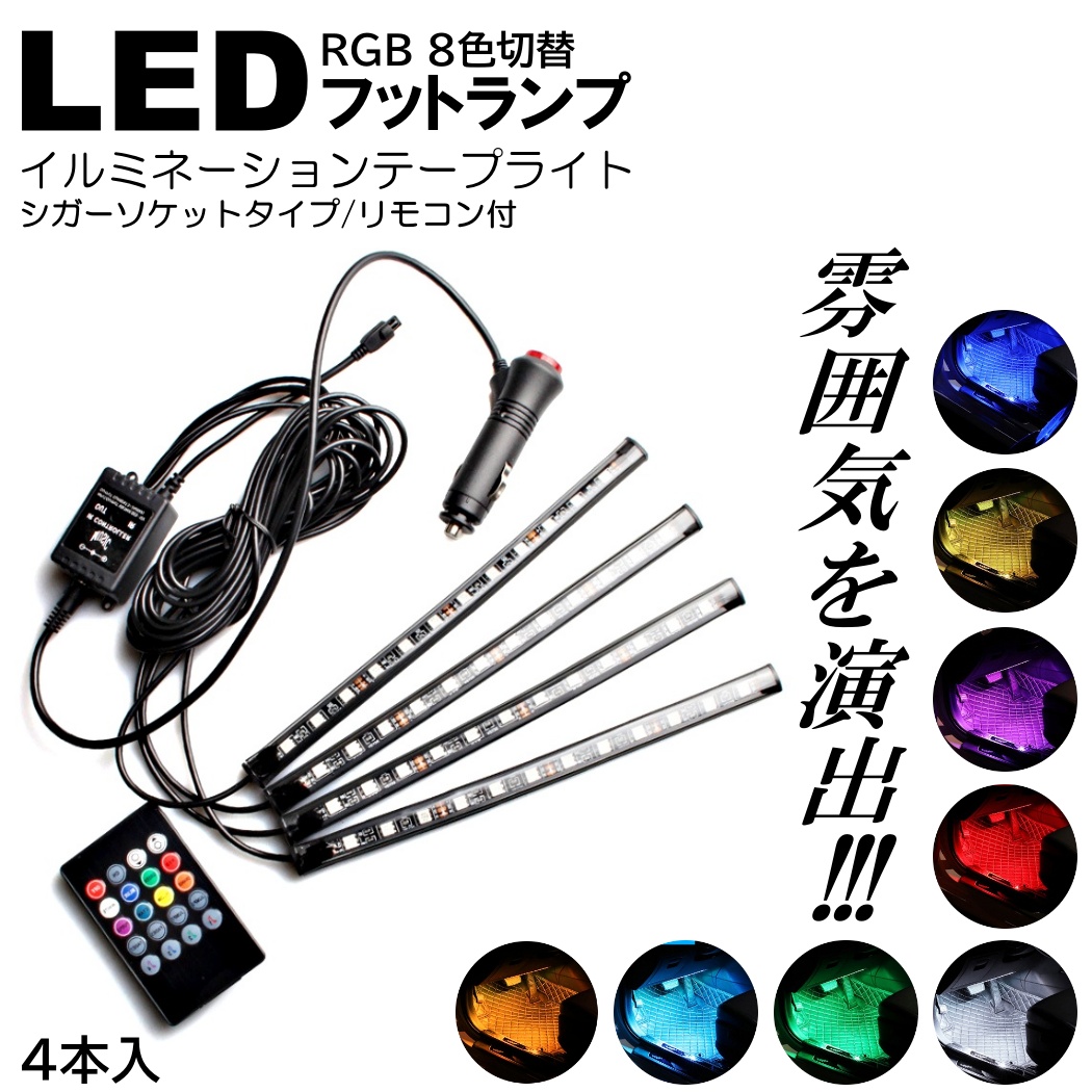 ■車用 テープライト LED USB シガーソケット 車内装飾用 フットランプ リモコン付き 48LED 内装 リモコン フットライト フロアライト