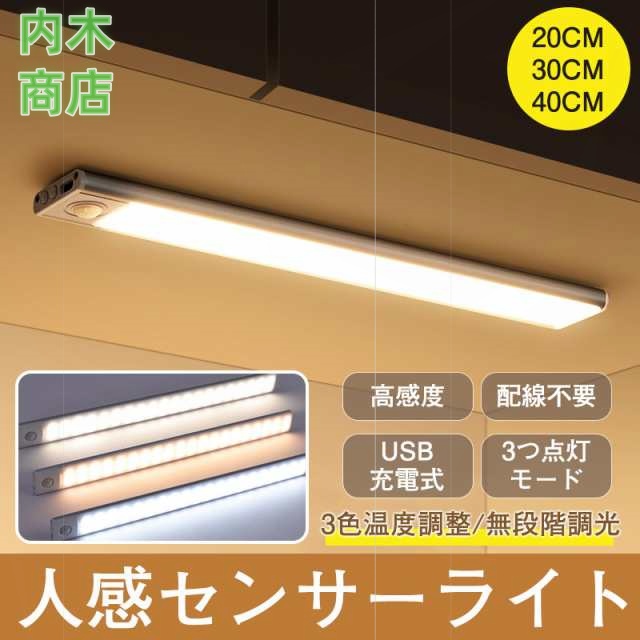20cm 2本セット 人感センサーライト Type-C充電式 室内 バーライト フットライト センサーライト センサー照明 3段階調色 超薄型 廊下 人感センサーライト 30cm 足元灯 常夜灯 屋内 玄関 キッチン 両面テープ 貼る 省エネ