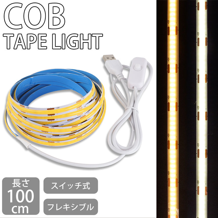 ■COB テープライト 100cm スイッチ式 ロープライト ストリングライト USB 両面テープ カット バックライト テレビ モニター フットライト
