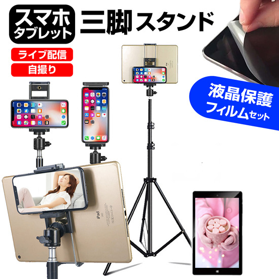 Blackview Tab 7 Pro [10.1インチ(1920x1200)] スタンド 三脚 フロア 高さ調節可能 と 反射防止 液晶保護フィルム セットstand-f10-k0001635750
