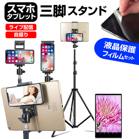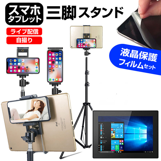 Blackview Tab 15 Pro [10.5インチ(1920x1200)] スタンド 三脚 フロア 高さ調節可能 と 反射防止 液晶保護フィルム セットstand-f10-k0001635744