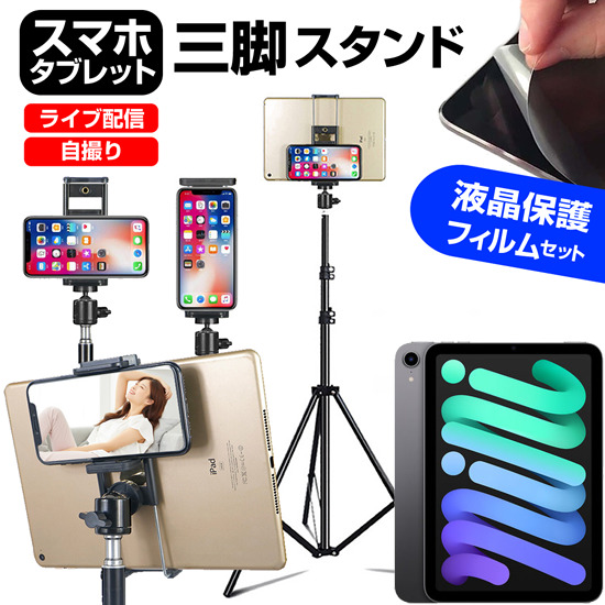APPLE i Pad mini 第6世代 2021年版 [8.3インチ(2266x1488)] スタンド 三脚 フロア 高さ調節可能 と 反射防止 液晶保護フィルム セットstand-f10-k0001383998