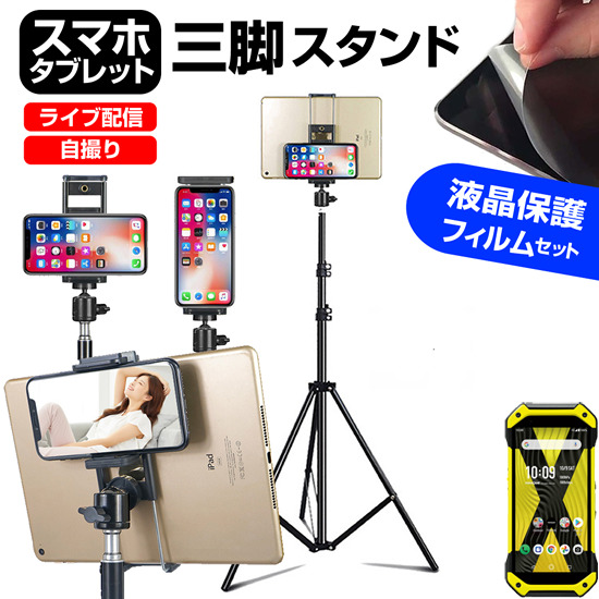 京セラ TORQUE 5G KYG01 [5.5インチ(2160x1080)] 機種で使える【スマホ フロアスタンド と 反射防止液晶保護フィルム のセット】 高さ調節可能 収納袋付きsm-stand-f10-k0001342345