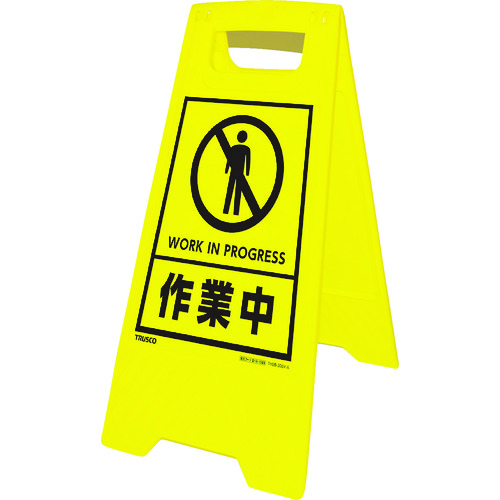 【特長】●コンパクトに収納でき、軽量で持ち運びも簡単な折り畳み式のフロアスタンドです。●立て置くことで簡単に注意喚起用の看板となります。【用途】●清掃作業中の注意喚起に。●進入禁止の表示に。【仕様】●表示内容:作業中●間口(mm):300●奥行(mm):420●高さ(mm):610●色:イエロー●縦(mm):610●横(mm):300●デザイン:「作業中」【材質/仕上】●ポリプロピレン(PP) 【注意】●折りたたみ時、指等の挟み込みに注意してください。●提供不可:chem SHERPA、SDS、ミルシート