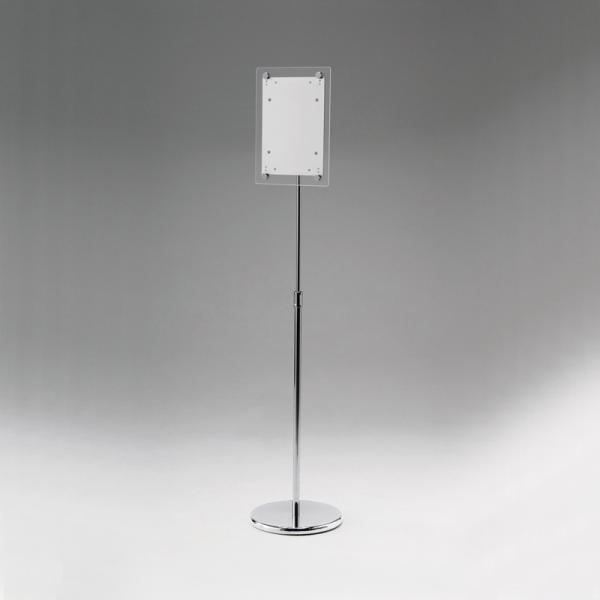 フレームレスでポスターがキレイに引き立ちます。高さ・角度の調節が可能です! アタッチメントと透明アクリルのデザインがおしゃれ。 ベースもポールもクロムメッキ(ベースはヘアライン仕上)で高級感あり。 イメージを大切にする場所にお使いください。 ・クリアなデザインが新鮮なメッセージスタンド ・フレームレスで表示がキレイに引き立ちます。高さ・角度の調節が可能 ・ショールームなどでの展示案内におすすめ 【ご注意】 ※ゆるみ防止のため、ポールとベースの固定に固着剤付きネジを 使用していますので、いったんネジを締めるとはずしにくくなります。 ※直射日光下では、熱により面板が変形することがあります。 設置場所にご注意ください。 ※規格サイズのみとなります。