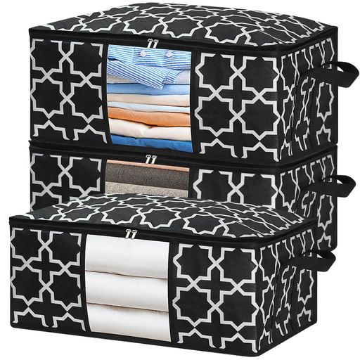 ■LHZK 布団収納袋 3点セット 持ち手とファスナー付き 布団袋 折りたたみ式 透明窓付き 羽毛布団 収納袋 衣類 毛布 収納 掛け布団 敷布団の
