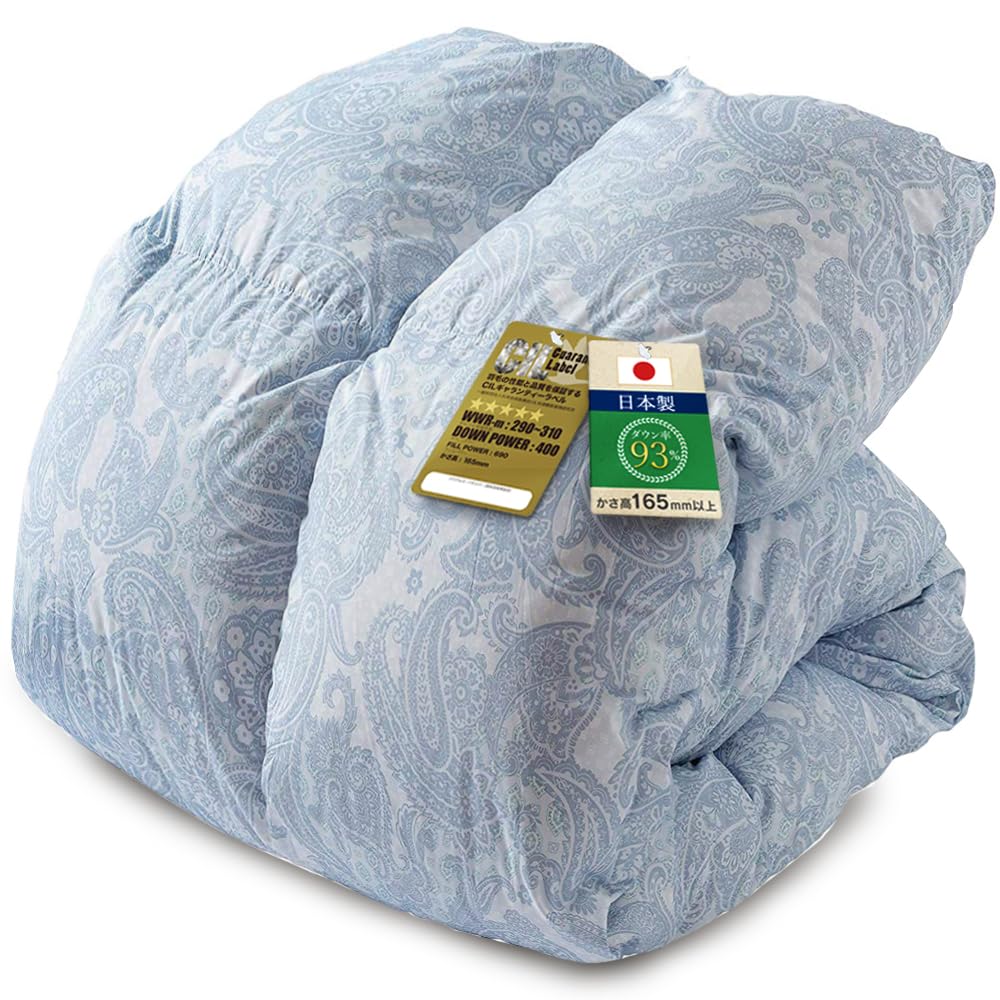 ■アイリスプラザ 羽毛布団 掛け布団 ホワイトダックダウン WDD93% 2.2kg セミダブル ペイズリー柄ブルー PAX23RP7232