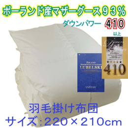 ■【ふるさと納税】羽毛布団【ポーランド産マザーグース93%】羽毛掛け布団 220×210cm クィーン【ダウンパワー410】