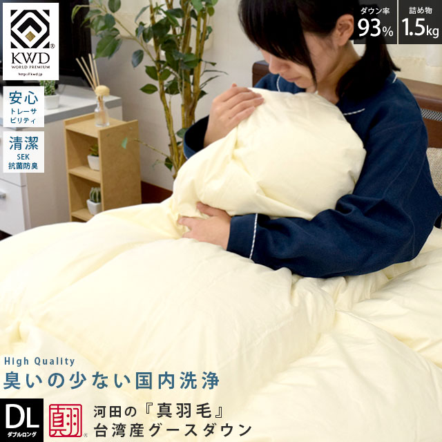 ■羽毛布団 ダブル ロング 190×210cm SEK 抗菌防臭加工 国内洗浄 ホワイトグース ダウン93% 1.5kg ロイヤルゴールドラベル
