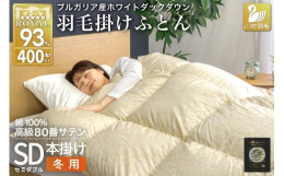 ■【ふるさと納税】羽毛布団 本掛け ホワイトダックダウン93% セミダブル 1.5kg 80番手サテン 綿100% ゴールド ブルガリア産 冬用 布団