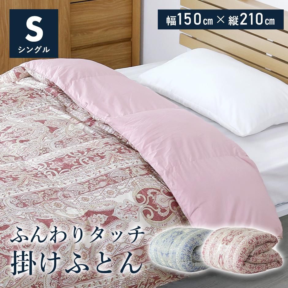 ■配送料について※別途送料対象地域のお客様はご購入手続きの際、その他要望欄へ【別途送料了承済み○○円×購入点数】と記入下さいますとスムーズな対応が可能です。・北海道:+2,000円・沖縄/離島:別途お見積り■商品名:羽毛タッチ掛け布団S(寝具)■本体サイズ幅150×丈210(cm)■材質ポリエステル100%詰め物:ポリエステル100% ※羽毛は入っておりません。■備考※他商品との同梱は出来かねます。※個体差により、サイズ・重量表記と多少の差異が生じる場合がございます。※ご使用のモニターやディスプレイ等の環境によって、実際の明るさや色と多少異なって見える場合がございます。※その他、記載事項ご確認の上ご注文ください。