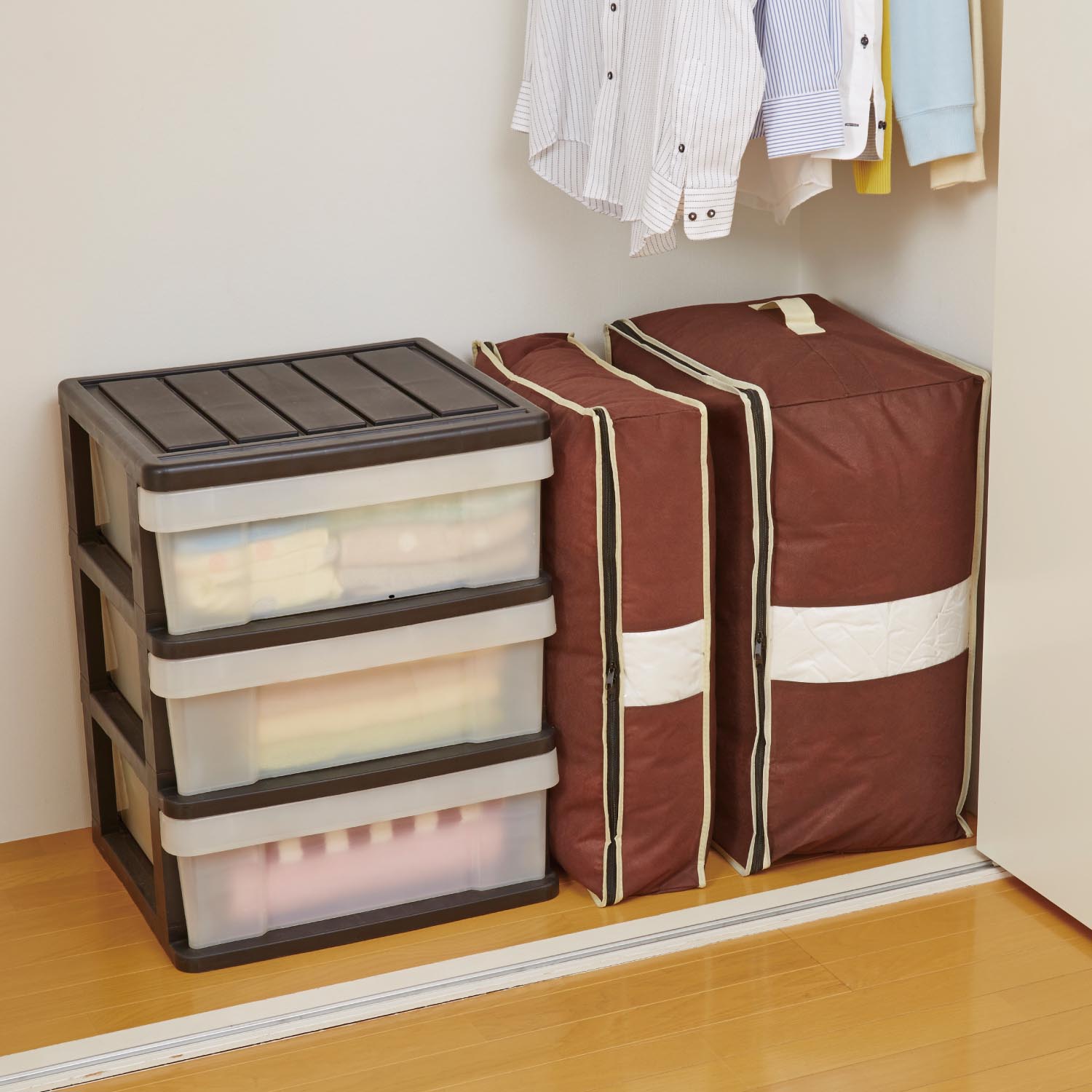 かさばる羽毛布団をすっきり収納できるケース幅広テープ2本で軽圧縮することで、ボリュームのある羽毛布団も手早くコンパクトにゆるやかに締めるので、羽毛布団の羽を傷めにくい炭入り素材を使用し、気になる汗のニオイもケア押入れやクローゼットの隙間に立てて置くことで、省スペースを実現します収納の目安は、シングルならシングル羽毛布団1枚、ダブルならダブル羽毛布団1枚です