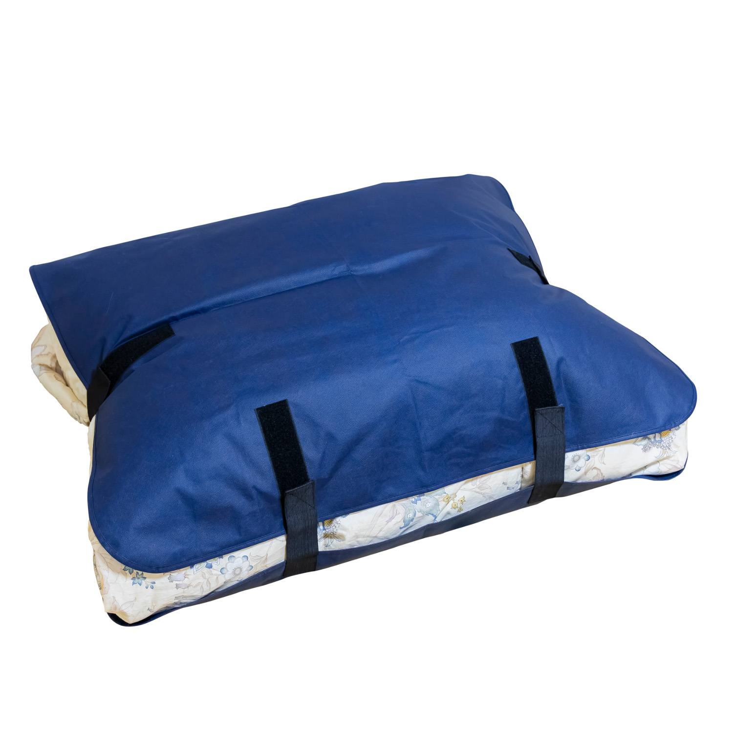 羽毛布団をはさんで面テープでとめるだけ圧縮しないから、いつでもふかふか!不織布なので通気性もあります【収納目安】シングルサイズ1~3枚、ダブルサイズ1枚