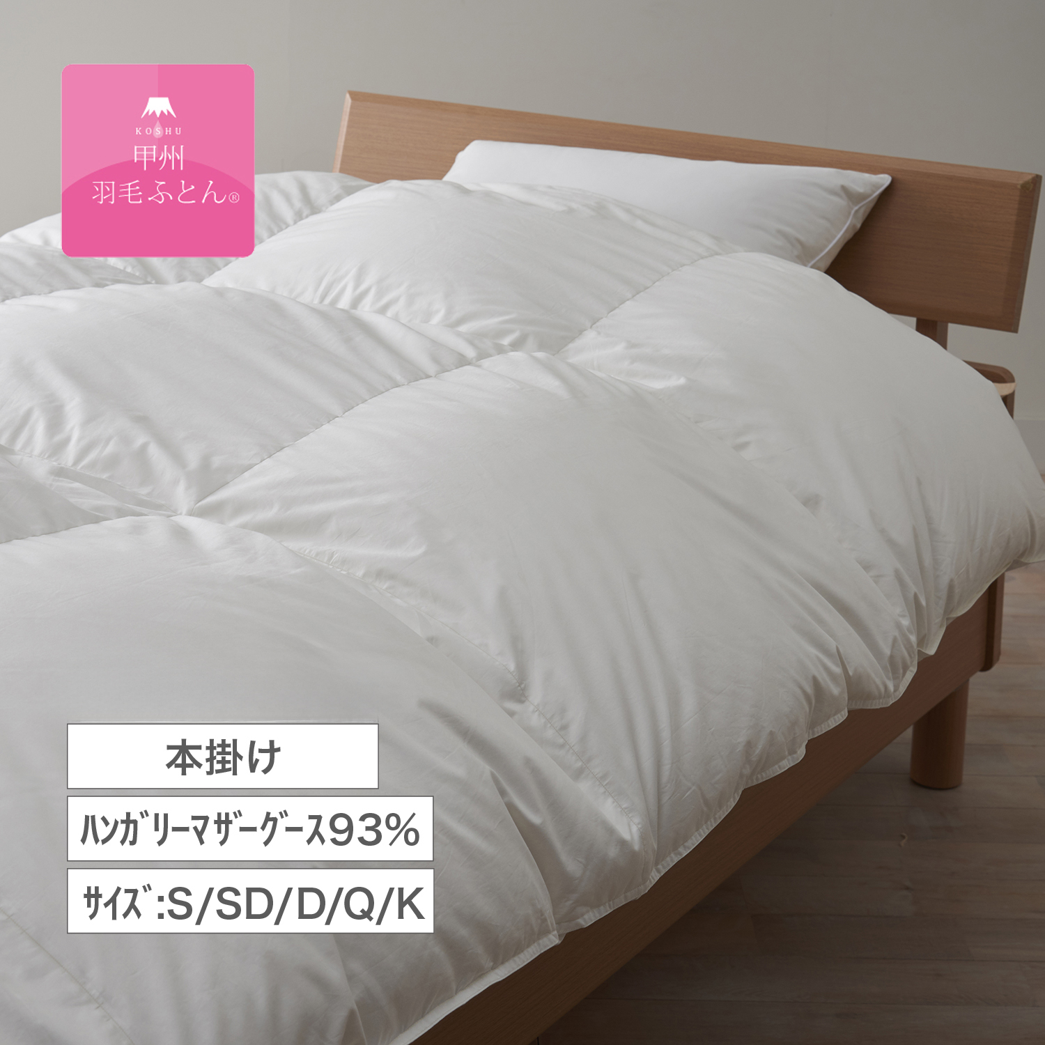 ■【甲州羽毛ふとん】ハンガリーマザーグース93%の防ダニ2枚合わせ羽毛布団(布団回収サービス付き)