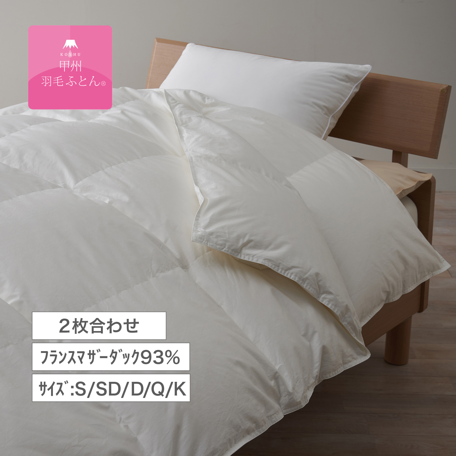 ■【甲州羽毛ふとん】フランスマザーダック93%の防ダニ2枚合わせ羽毛布団(布団回収サービス付き)