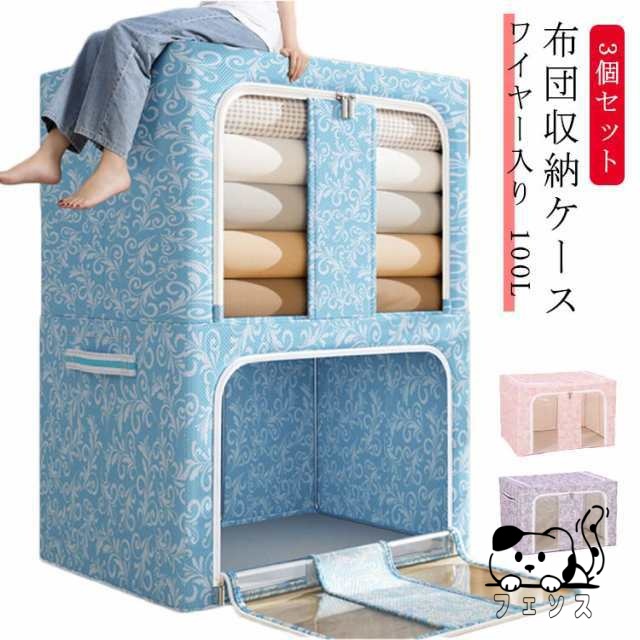 3個セット 100L 布団ケース 衣類収納 布団 収納袋 丈夫 布団 収納ケース ワイヤー入り 衣類 収納ケース 持ち手付き 大容量 布団収納 収納ボックス 羽毛布団 収納 透明窓付き 敷布団 おもちゃ 収納ケース 衣類収納袋 押し入れ クローゼット 収納 折りたたみ 引越 送料無料