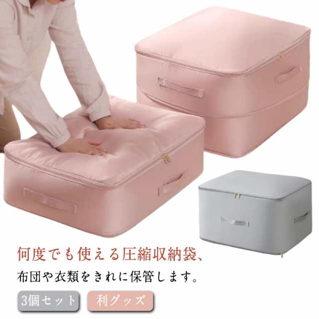 ■羽毛布団圧縮袋 圧縮バッグ 3個セット 収納ケース ダウンジャケット圧縮バッグ 取っ手付き ファスナー式圧縮収納袋 羽毛布団 コンパクト