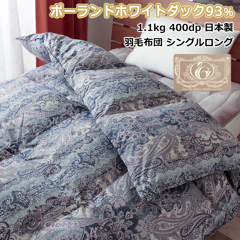 ■羽毛布団 シングルロング 綿100% ポーランド ホワイトダックダウン 93% 日本製 羽毛ふとん 掛け布団 ポイント消化