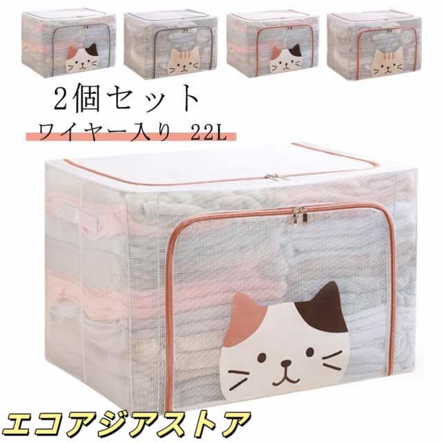 ■クリア 持ち手 収納ケース 布団 ワイヤー 22L 収納袋 収納ケース ネコ 2個セット おもちゃ 2個セット 透明窓 PVC 羽毛布団 収納 布団ケー