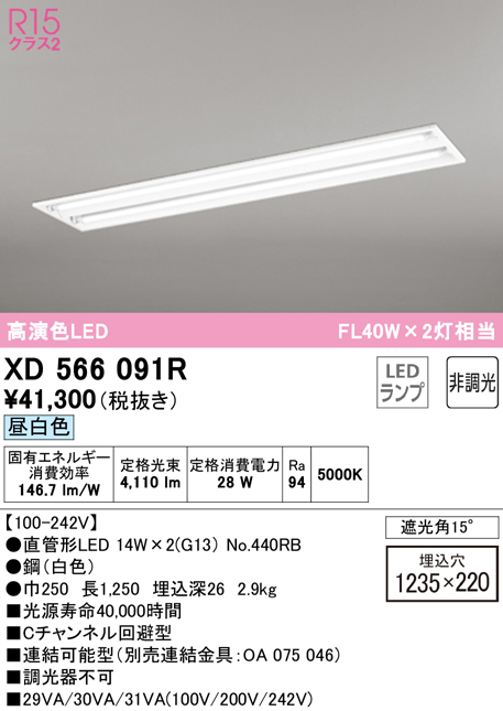■(送料無料) オーデリック XD566091R ベースライト LEDランプ 昼白色 非調光 ODELIC