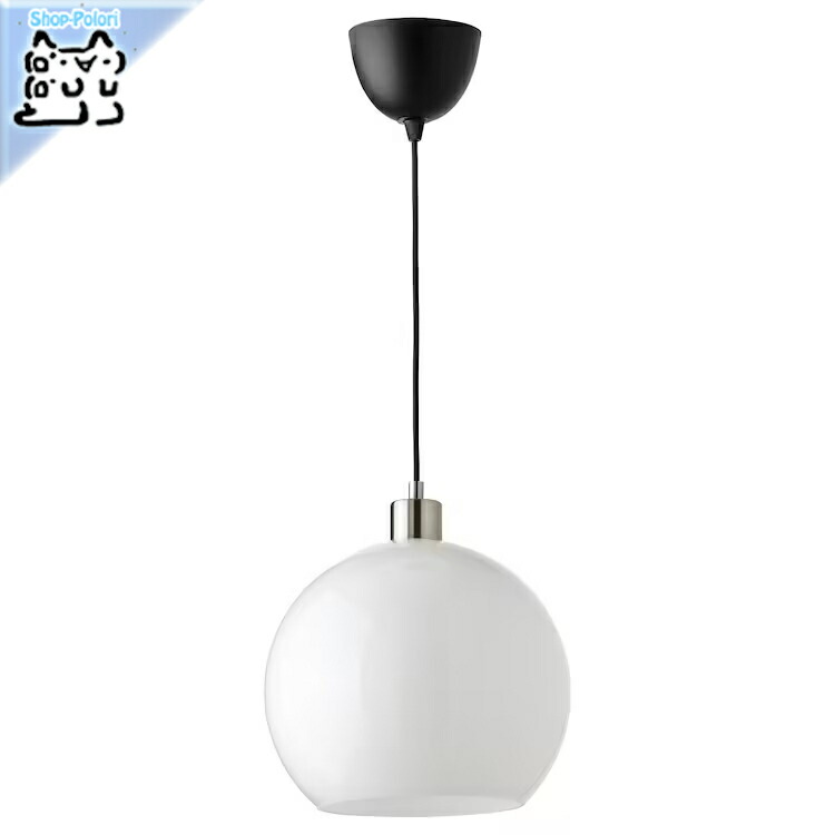 ■【 IKEA - イケア -】JARPLIDEN -イェルプリデン- ペンダントランプ ホワイト ガラス/ニッケルメッキ 30 cm (504.996.19)
