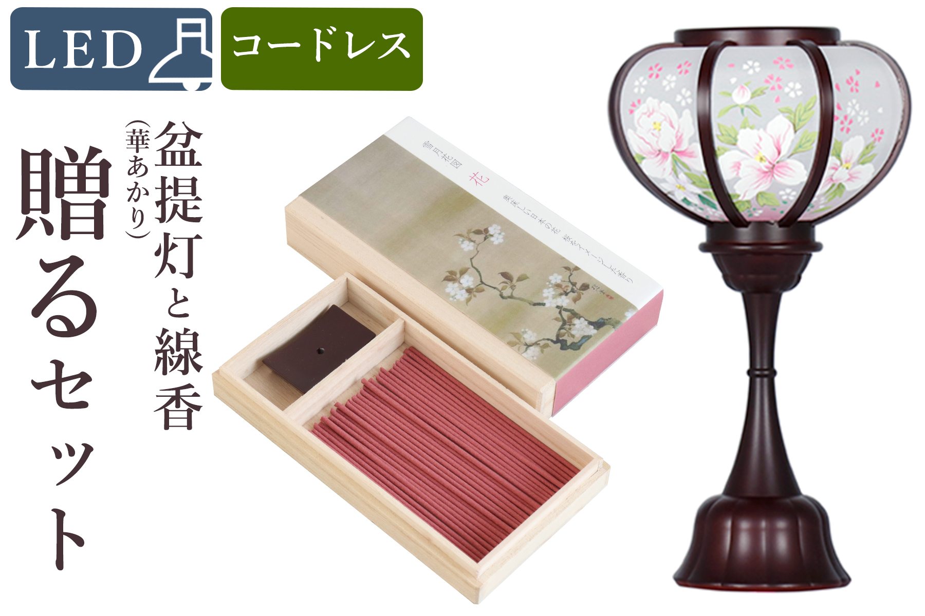 ■盆提灯 初盆 新盆 モダン 仏具 線香 贈る セット 花 岐阜の誉れ シリーズ 華あかり LED コードレス 電池式 ミニサイズ 提灯 仏壇 仏花 贈