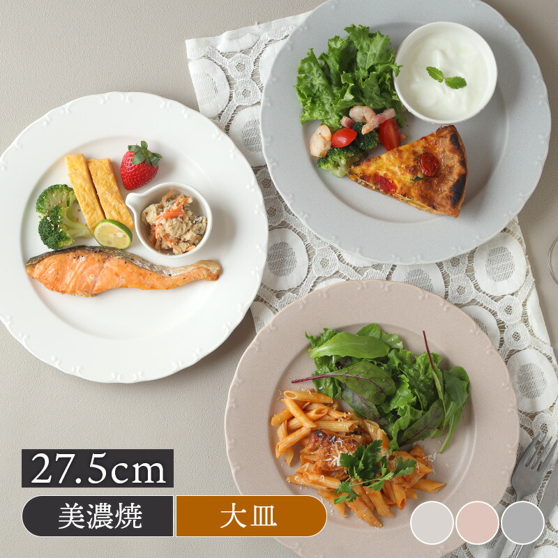 商品説明食卓をワンランクアップさせてくれるモダンでオシャレなプレートです。適度な深さで汁気のある料理にも適しています。商品詳細サイズ/27.5×高さ2.7cm重さ/約747g素材/磁器質感/セミマット生産地/日本(美濃焼)電子レンジ・食洗機可オーブン・直火不可※サイズは全て外寸になります。※サイズ・重さなどは商品により誤差があります。ご注意※色むらがある場合がございます。※鉄粉やピンホール(小さな穴)、ボロ(小さな突起)が見られる場合がございます。※釉薬の垂れ・濃淡・剥げ・ムラ・溜まり等が見られる場合がございます。※お客様のお使いのモニター設定、お部屋の照明等により実際の商品と色味が異なって見える場合がございます。※画像に含まれる小物は使用イメージのために使用しています。※不明な点がございましたら、お気軽にお問い合わせ下さい。