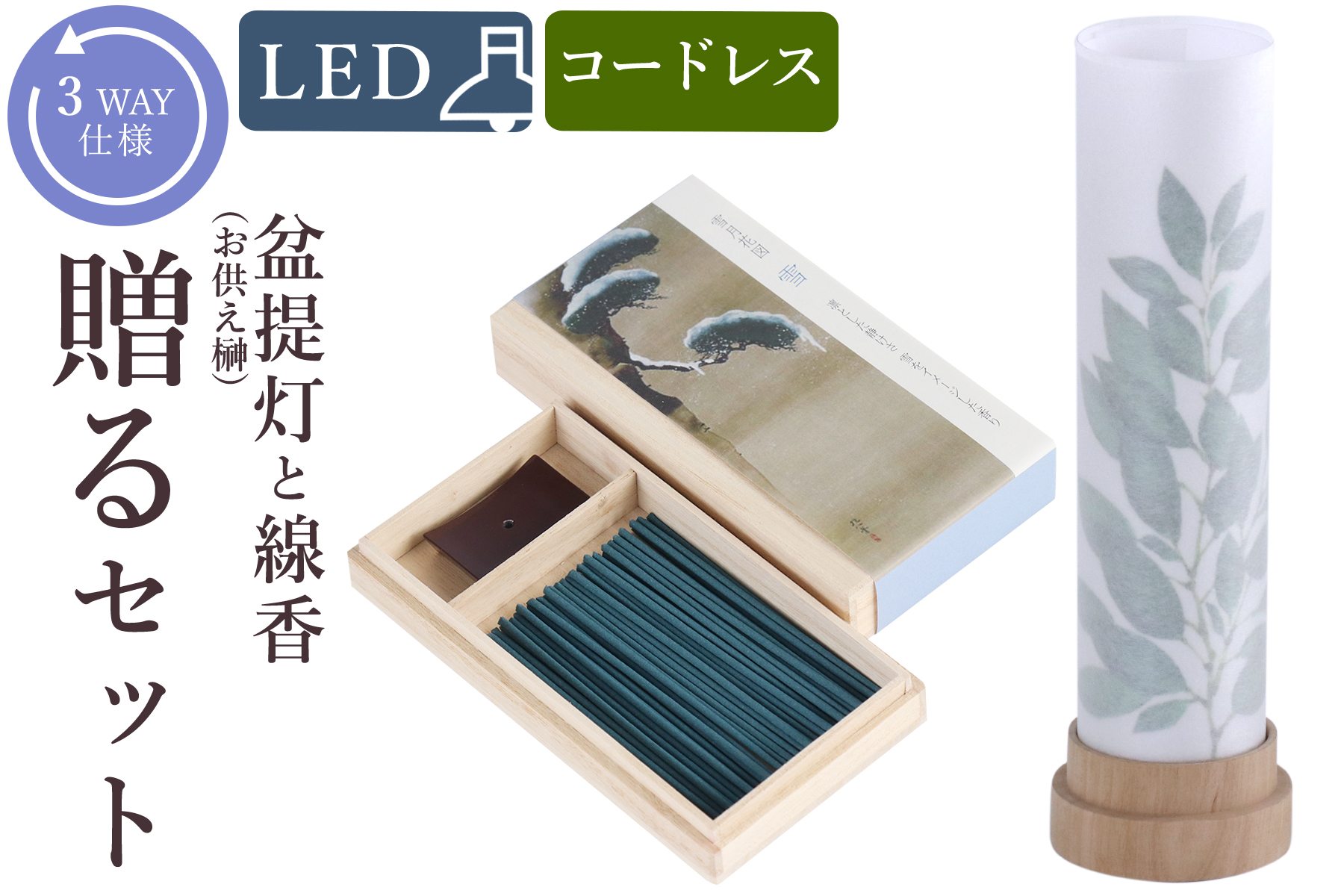 ■盆提灯 初盆 新盆 モダン 仏具 線香 贈る セット 雪 岐阜の誉れシリーズ 白紋天 神前 お供え 供物 榊 3通りの使い方 神道 神棚 電池式 コ