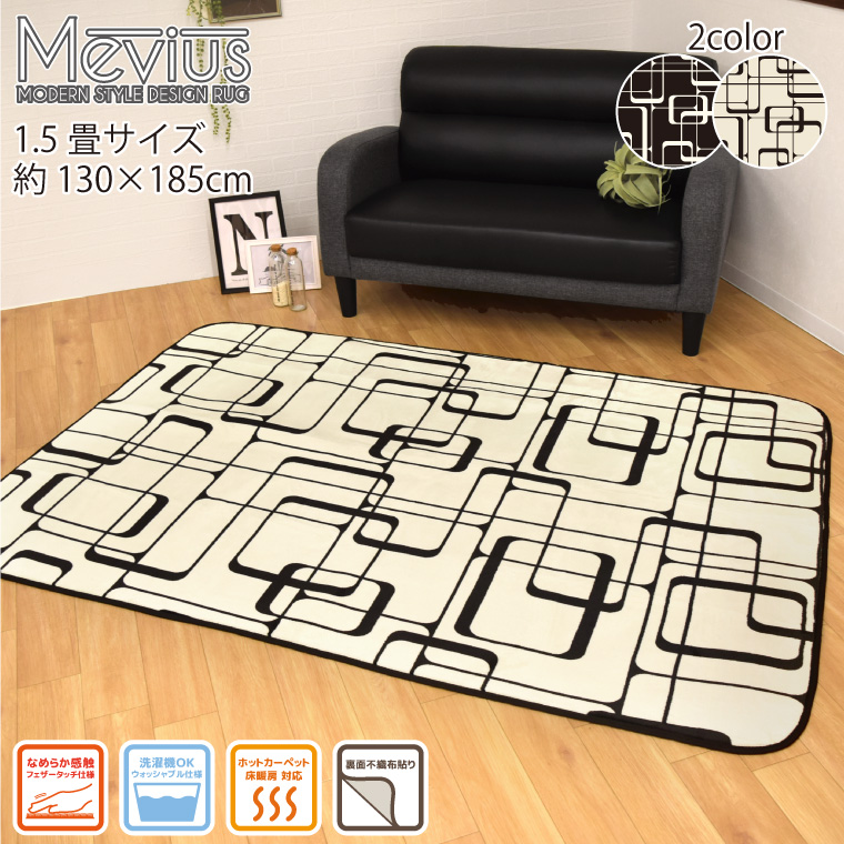 ■ラグ ラグマット 1.5畳 洗える 軽量 約130×185cm 幾何学 モダン ホットカーペット対応 こたつ敷き 在宅勤務 コンパクト メビウス
