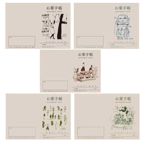 ■おくすり雑貨 スマイル お薬手帳 Line Art by カワツナツコ 5冊セット おしゃれ モダン シック 送料無料