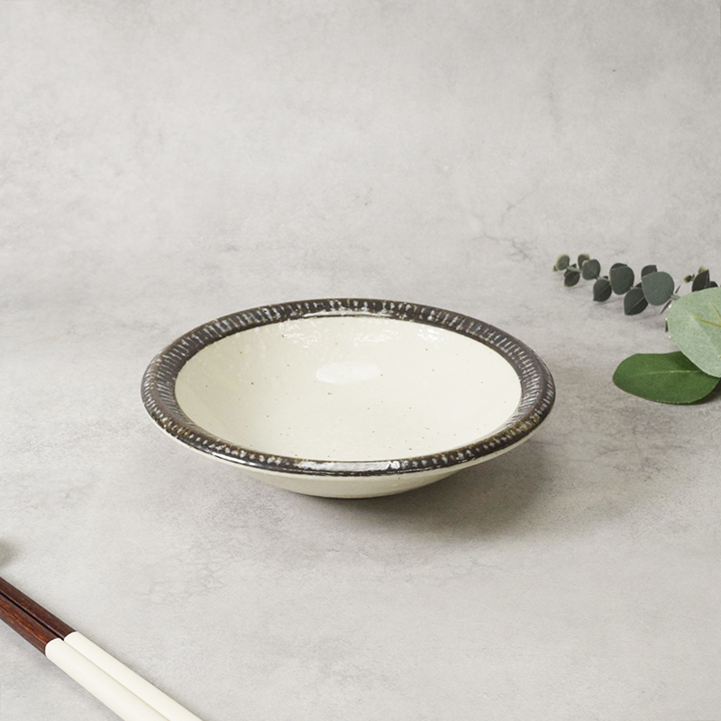 商品説明 白磁の地に黒の渕十草模様を丁寧にあしらった中鉢です。 直径17.5cmのサイズ感は、煮物鉢として深みある一皿に、あるいはサラダ・ヨーグルト・スープ・デザートなど多用途に使えます。 商品詳細 素材/磁器 質感/つややか 生産地/日本(美濃焼) 電子レンジ・食洗機可 オーブン・直火不可 ※サイズは全て外寸になります。 ※サイズ・重さなどは商品により誤差があります。 ご注意 ※鉄粉(茶色い点・黒い点)やピンホール(小さな穴)、ボロ(小さな突起)が見られる場合がございます。 ※柄に濃淡が見られる場合がございます。 ※釉薬の垂れ・濃淡・剥げ・ムラ・溜まり等が見られる場合がございます。 ※色飛びが見られる場合がございます。 ※お客様のお使いのモニター設定、お部屋の照明等により実際の商品と色味が異なって見える場合がございます。 ※画像に含まれる小物は使用イメージのために使用しています。 ※不明な点がございましたら、お気軽にお問い合わせ下さい。