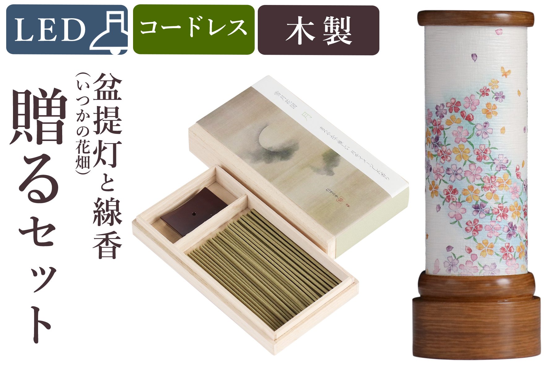 ■盆提灯 初盆 新盆 モダン 仏具 線香 贈る セット 月 八女・移ろいの夏 シリーズ いつかの花畑 ミニ 電池式 コードレス LED 小型 和 行灯