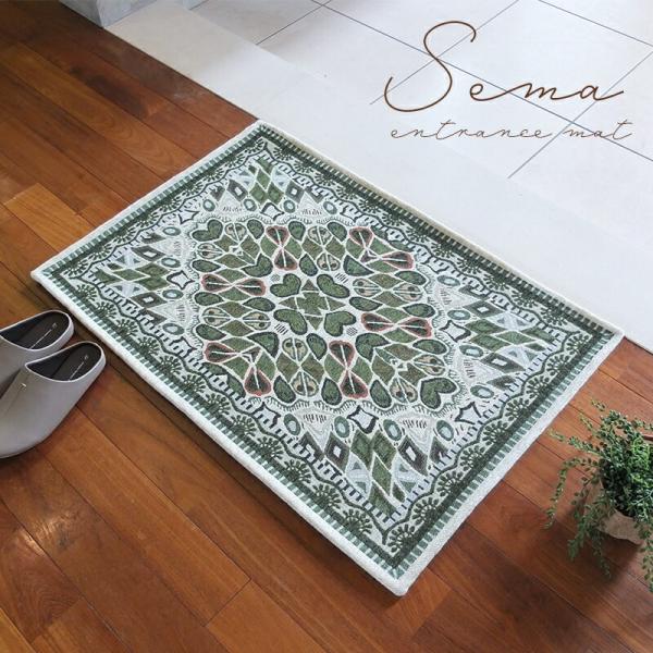 ■玄関マット 北欧 室内 屋内 おしゃれ 洗える セーマ 50×80cm すべり止め ドアマット ゴブラン シェニール モダン シンプル 人気 グリー