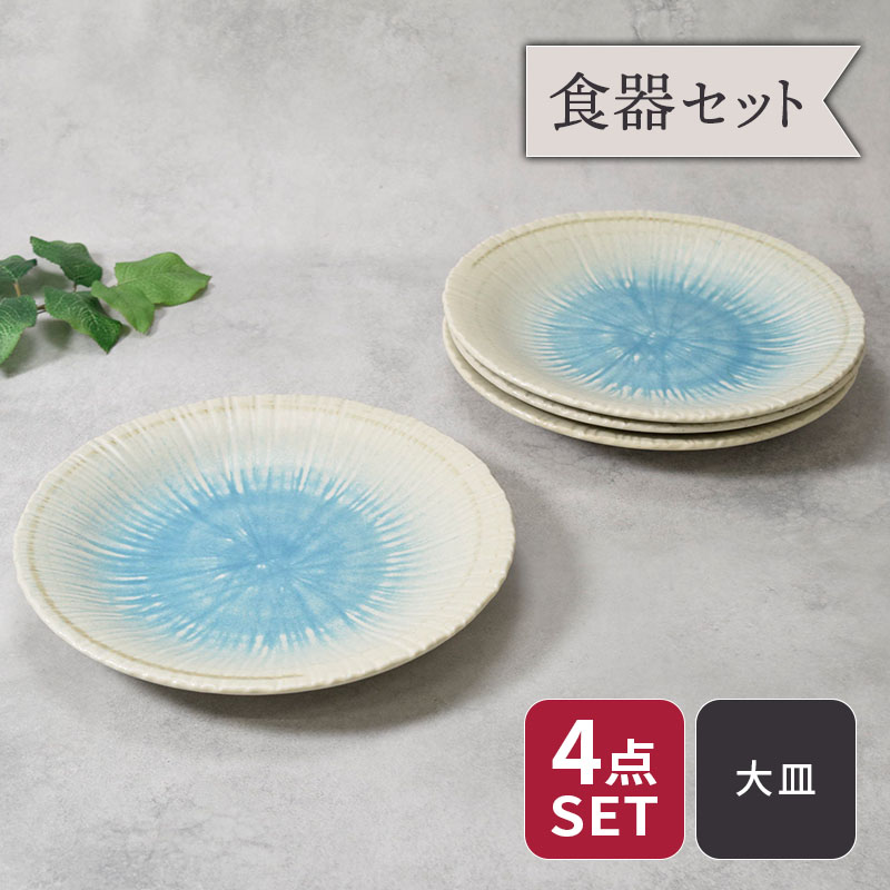 商品説明 青の美しさが食卓を彩る、和食にぴったりの大皿セット。 セット内容/商品詳細(サイズ・重さ) [大皿]×4 直径25×高さ3cm 重さ/約600g 素材/磁器 生産地/日本(美濃焼) 電子レンジ・食洗機可 オーブン・直火不可 ※サイズは全て外寸になります。 ※サイズ・重さなどは商品により誤差があります。 ご注意 ※柄の途切れ、色とびが見られる場合がございます。 ※お客様のお使いのモニター設定、お部屋の照明等により実際の商品と色味が異なって見える場合がございます。 ※画像に含まれる小物は使用イメージのために使用しています。 ※不明な点がございましたら、お気軽にお問い合わせ下さい。