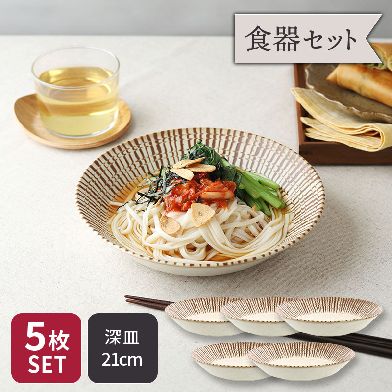 ■カレー・パスタ皿 21cm プレート 5枚セット チョコストライプ 和食器 割引セット 送料無料 和食器 モダン プレート お皿 皿 食器 大皿 デ