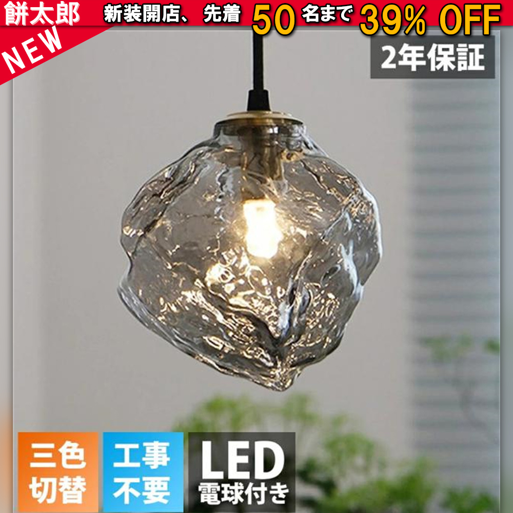 ■【5年保証】ペンダントライト おしゃれ ガラス 1灯 吊下げ灯 照明 北欧 LED電球対応 三色切替 ガラス造形 キッチン 照明器具 トイレ 階段